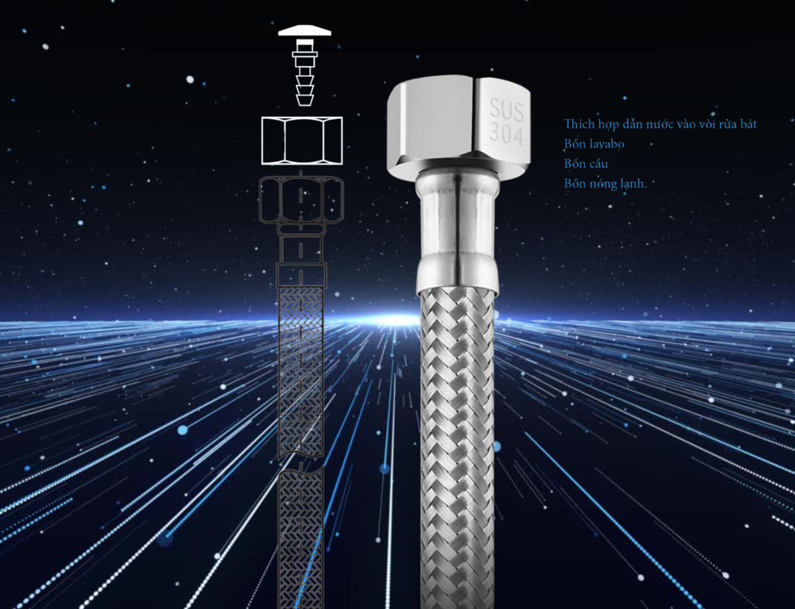 Dây cấp nước chất liệu cao cấp, độ bền cao., kích thước dây đa dạng